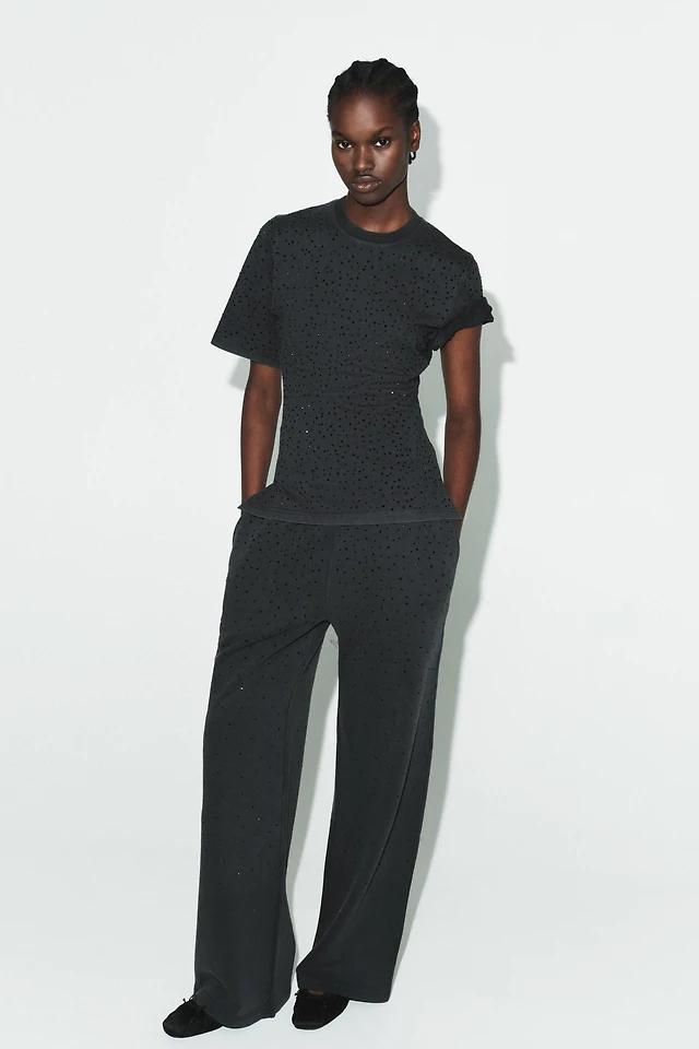Karl Lagerfeld Paris Women's Short Sleeve Tweed Trim Knit Top