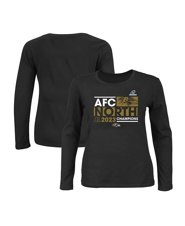 Women's Fanatics Black Baltimore Ravens 2023 Afc North Division Champions Plus Conquer Long Sleeve Crew Neck T-shirt
