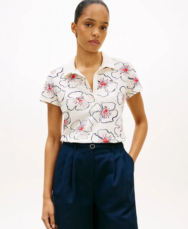 Style & Co Petite Collared Neck Embroidered Detail Shirt, Macy's Exclusive
