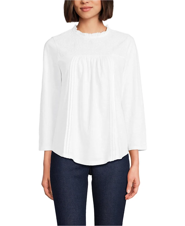 Lands' End Women's Plus 3/4 Sleeve Lightweight Jersey Embellished Top
