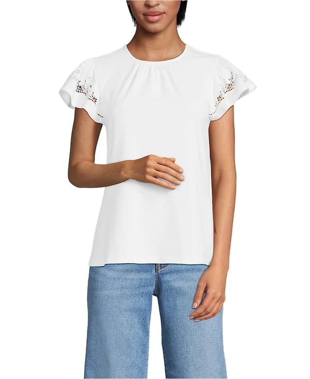 Lands' End Women's Plus Lightweight Jersey Crew Neck Ruffle Sleeve Flowy Top