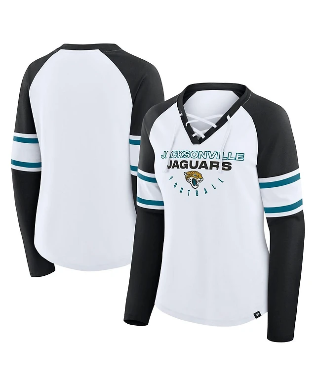 Fanatics Women's White/Black Atlanta Falcons Redzone Blitz Package Raglan Lace-Up V-Neck Long Sleeve T-Shirt