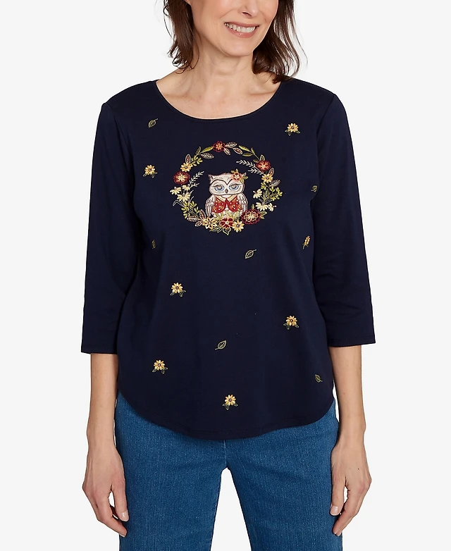 Alfred Dunner Women's Classic Starry Night Holiday Tree Crew Neck Top