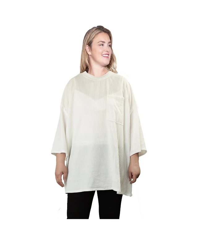 1.state Women's Flutter Short Sleeve V-Neck Knit Top