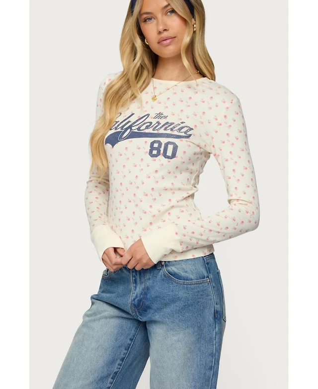 Edikted Womens Cali Floral Ribbed Long Sleeve T Shirt