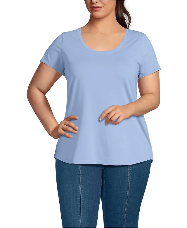 Lands' End Women's Elbow Sleeve Supima Cotton Boatneck T-Shirt
