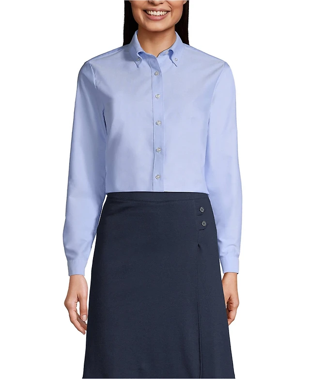 Lands' End School Uniform Women's Long Sleeve Oxford Dress Shirt
