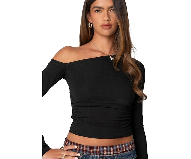 Edikted Womens Stacie Asymmetric Long Sleeve Top