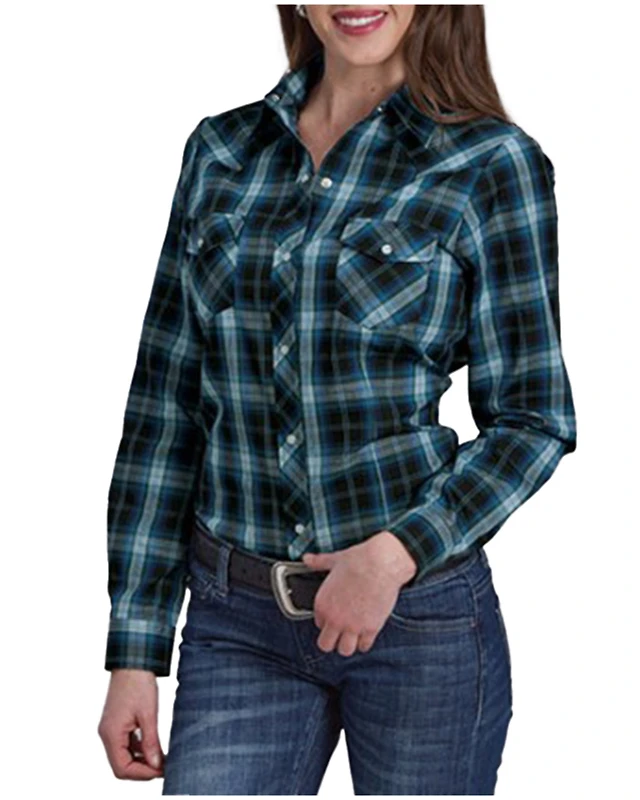 Shyanne Women's Elysprings Plaid Print Long Sleeve Snap Flannel Shirt