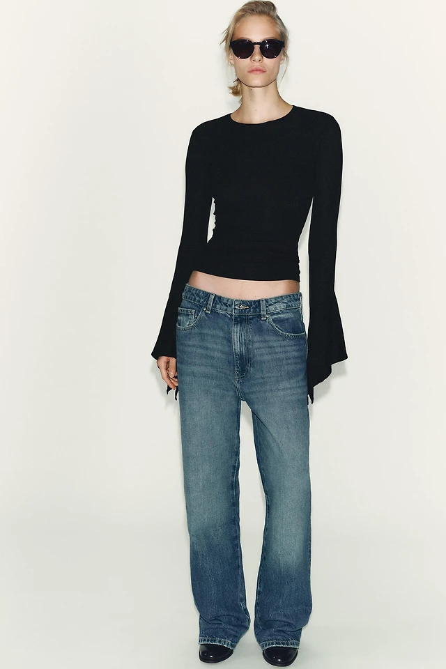Women's 3/4 Sleeve Overlapped Bell Y-Neck Top