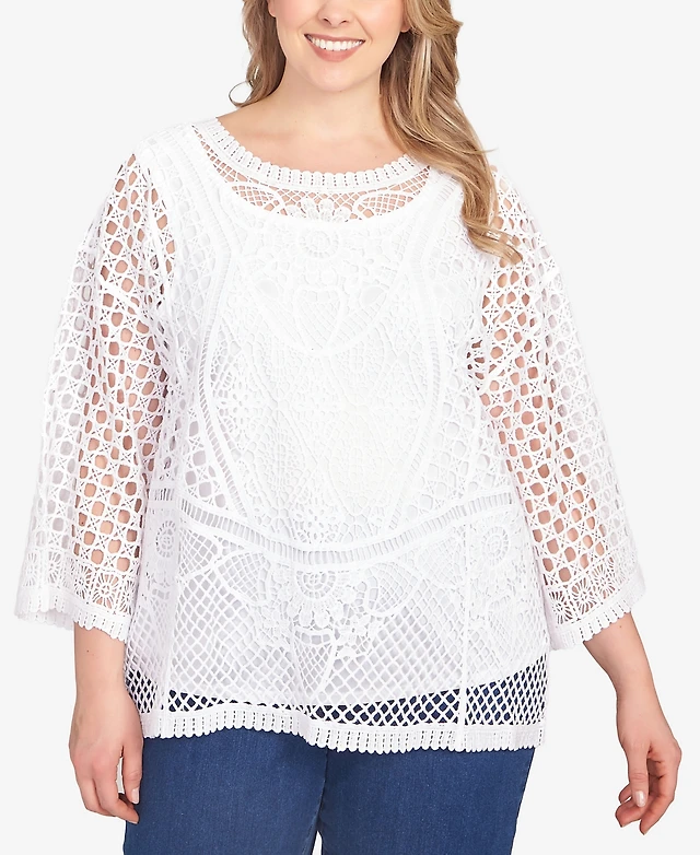 Alfred Dunner Plus Classic Puff Print Abstract Feather Crew Neck Top