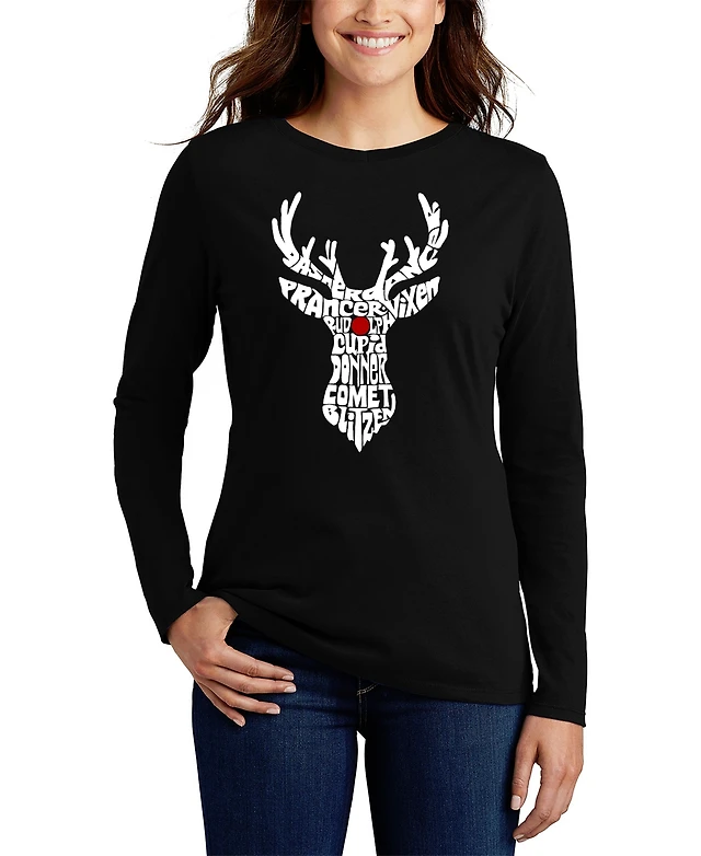 La Pop Art Women's Santa's Reindeer Word Long Sleeve T-shirt