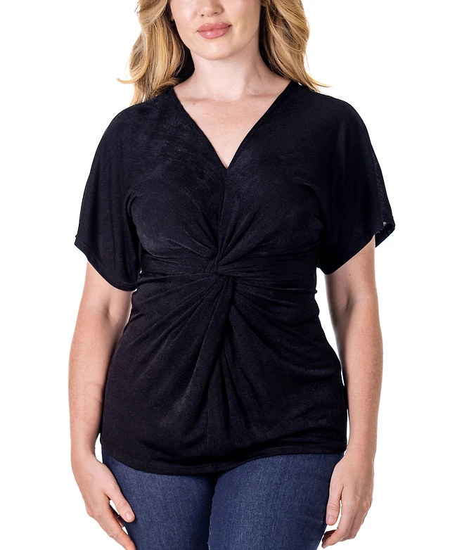Plus Keyhole Neck Cutout Short Sleeve Top