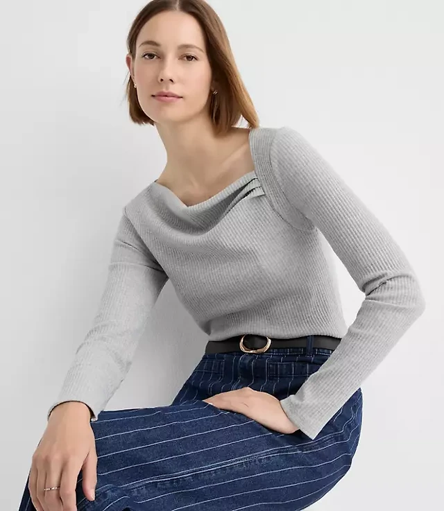 Heathered Asymmetrical Neck Ribbed Top