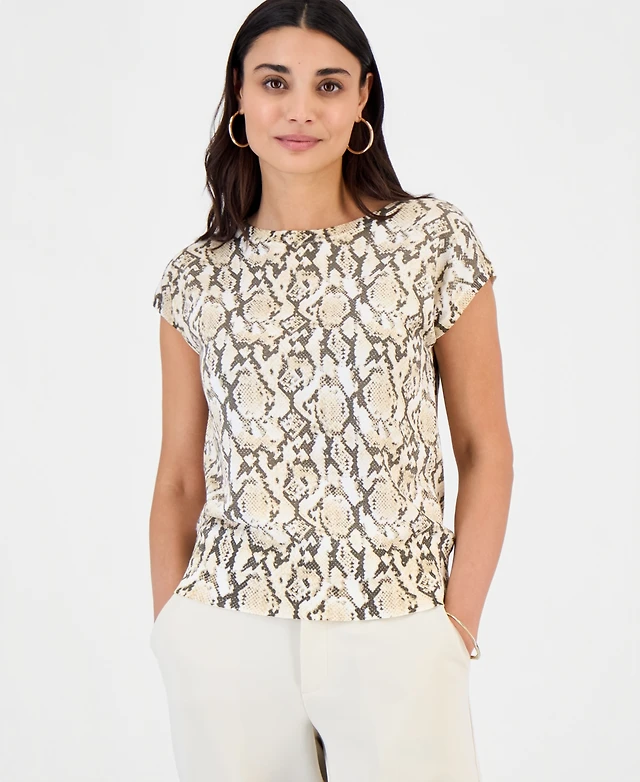 I.n.c. International Concepts Petite Printed Wide Neck Dolman-Sleeve Top, Macy's Exclusive