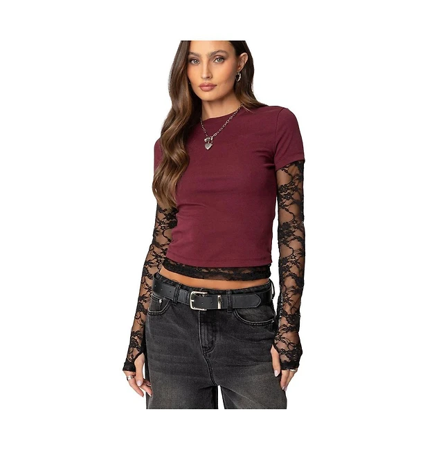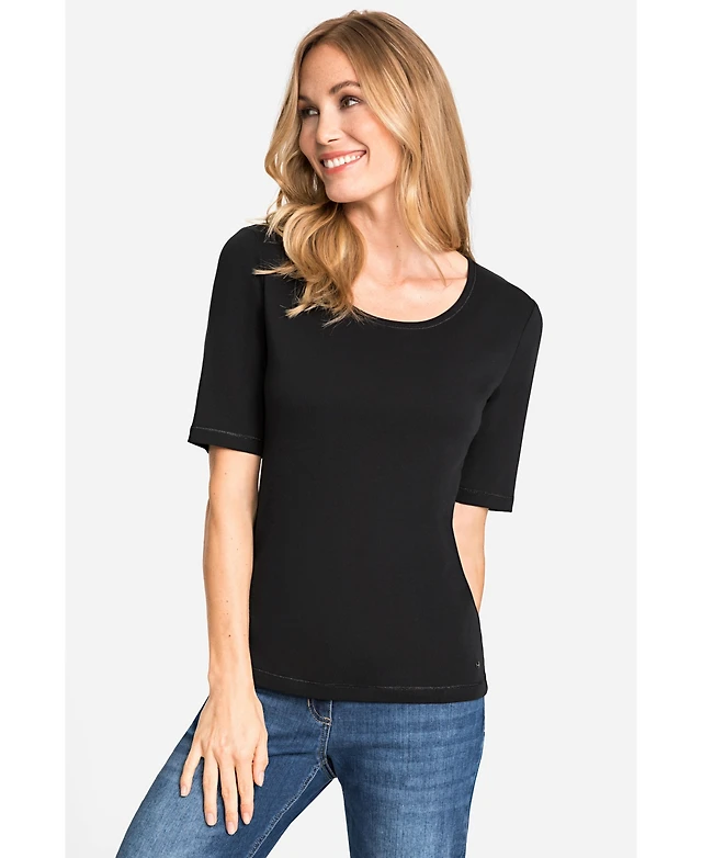 Lands' End Women's Elbow Sleeve Slub Lace Trim T-Shirt