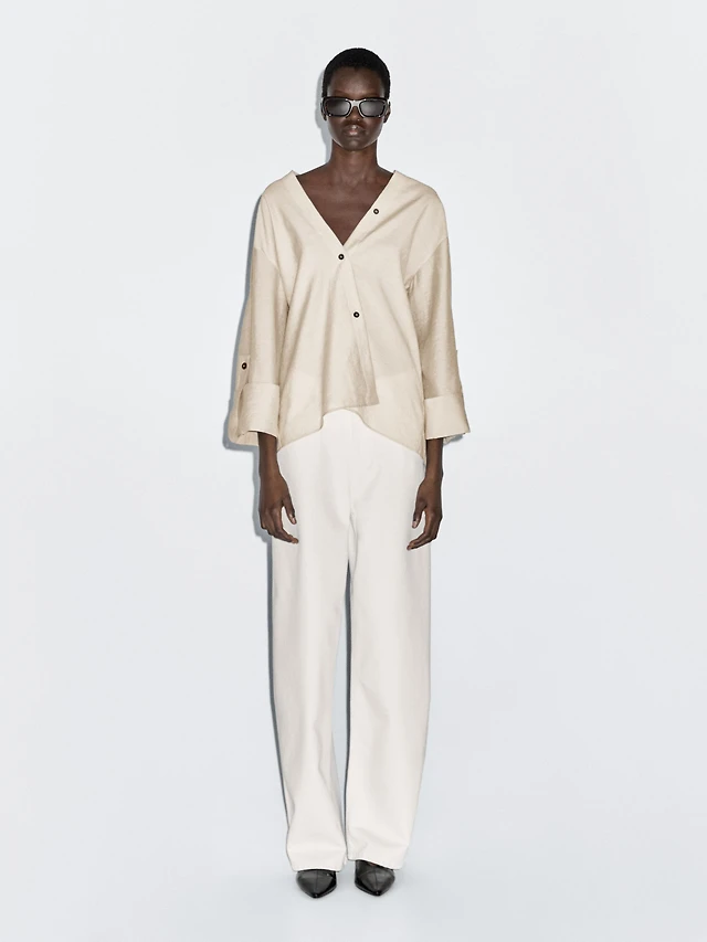 Lands' End Women's Carefree Cotton Shirt with Removable Bow