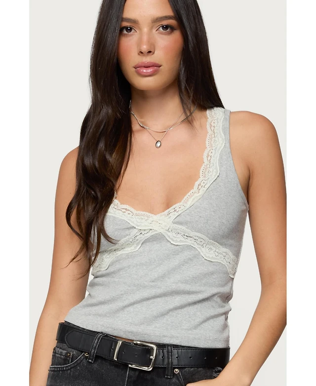 Edikted Women's Oriana Contrast Lacey V Neck Top