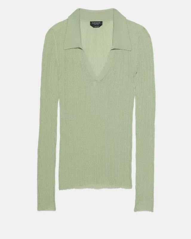 Sheer Long Sleeve Ribbed Polo