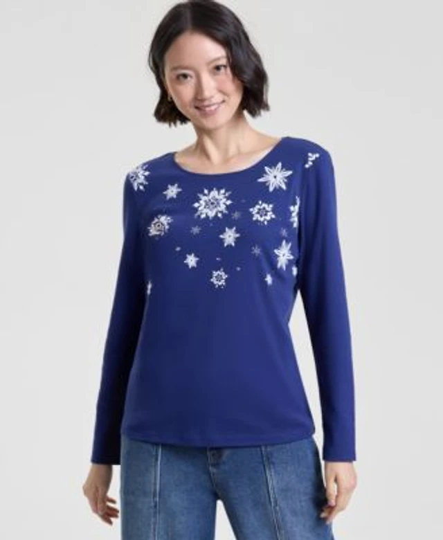 Style & Co Petite Cotton Split-Neck Long-Sleeve Shirt, Exclusively at Macy's