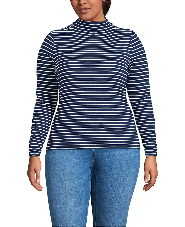Lands' End Women's Drapey Rib Skimming Long Sleeve Mock Neck
