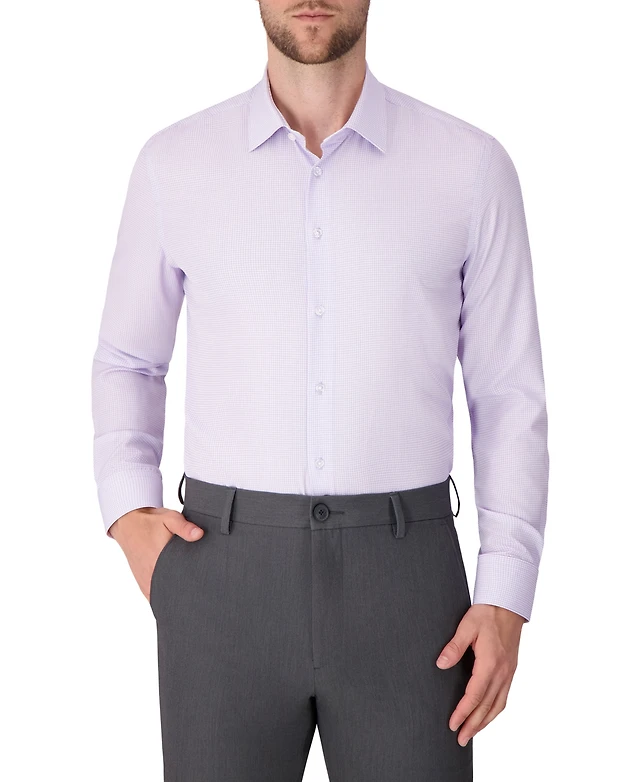 Report Collection Men's Long Sleeve 4-Way Check Print Dress Shirt
