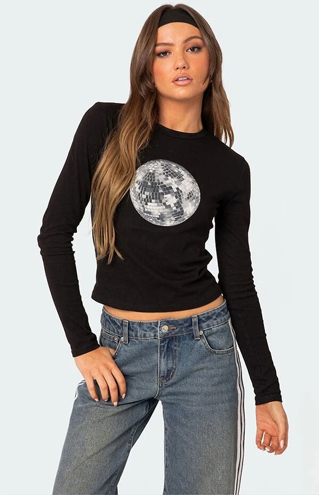 Edikted Cicilia Long Sleeve Ribbed T-Shirt