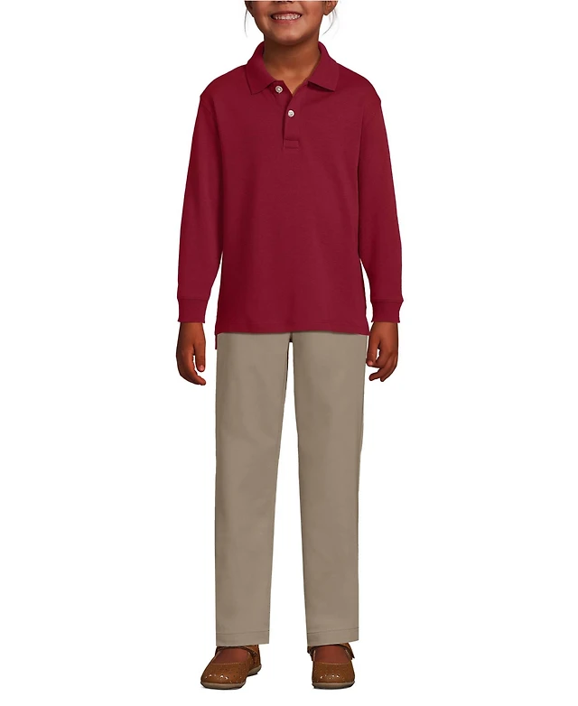 Lands' End Girls School Uniform Long Sleeve Interlock Polo Shirt