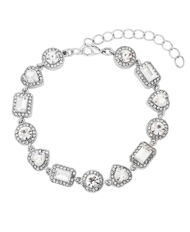 Adornia Silver Plated Crystal Halo Heart Chain Bracelet
