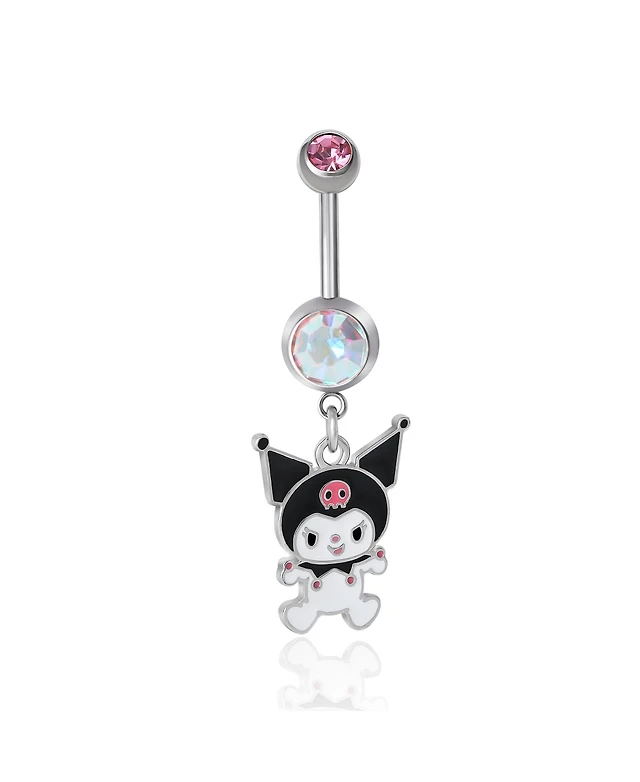 Sanrio Hello Kitty Authentic Officially Licensed Womens 14G Stainless Steel Light Rose Crystal Belly Button Ring - Hello Kitty Face