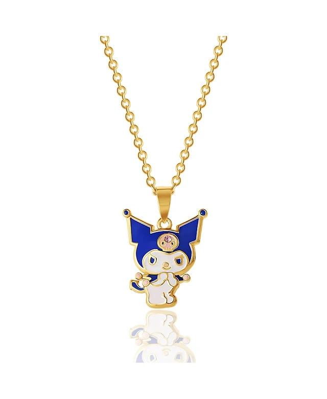 Sanrio Hello Kitty Yellow Gold Flash Plated and Light Rose Crystal Kuromi Pendant - 18'' Chain, Officially Licensed Authentic