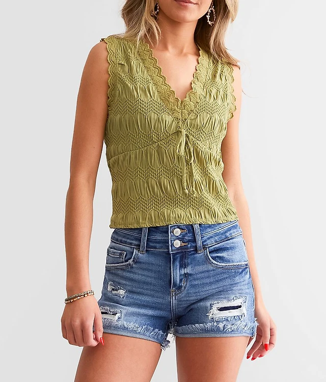 Ultra Low-Rise Interior Pattern Waistband Twill Shortie Shorts