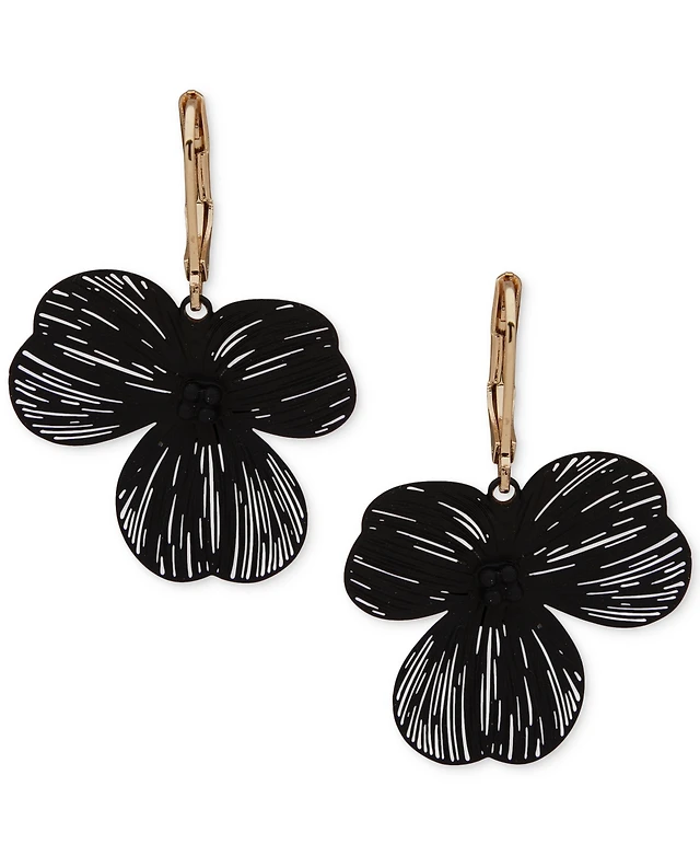 lonna & lilly Gold-Tone Black Stone Leaf Stud Earrings