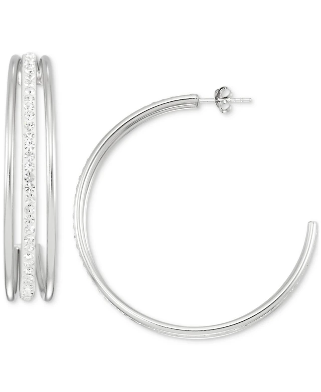 Anne Klein Two-Tone 3-Pc. Set Oval Crystal Hoop Earrings