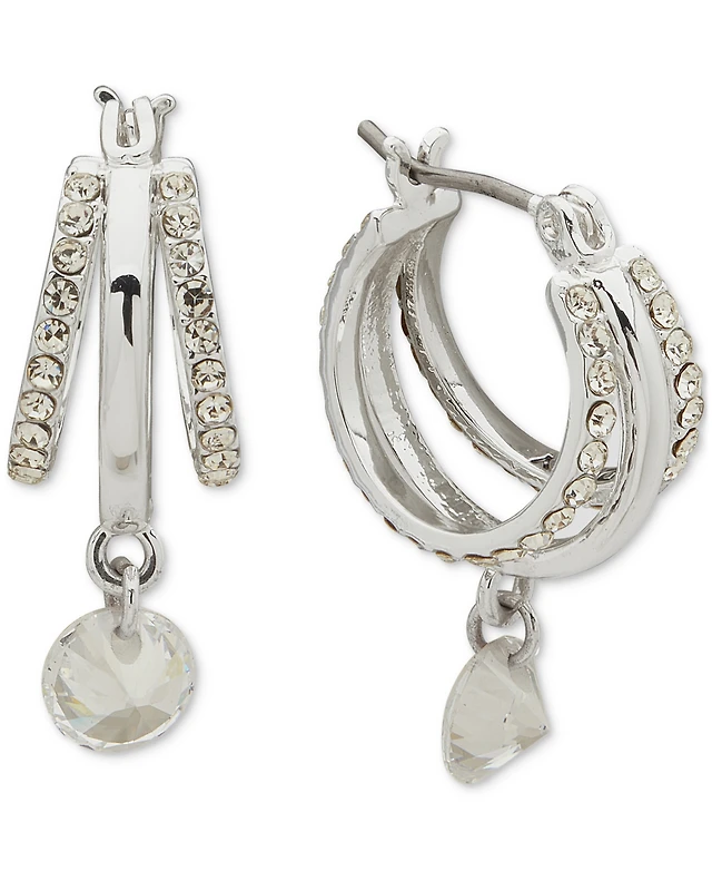 Dkny Gold-Tone Extra-Small Crystal Triple-Split Hoop Earrings, 0.47"