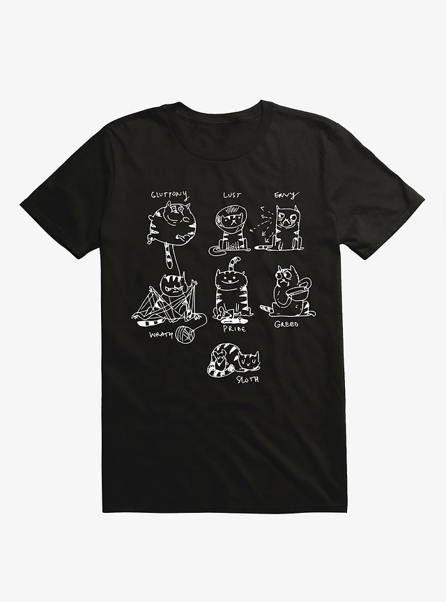 7 Sins Cat Black T-Shirt