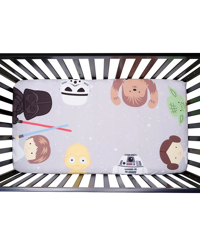 Lambs & Ivy Star Wars Galaxy Cotton Fitted Crib Sheet - Yoda/Darth Vader/R2D2