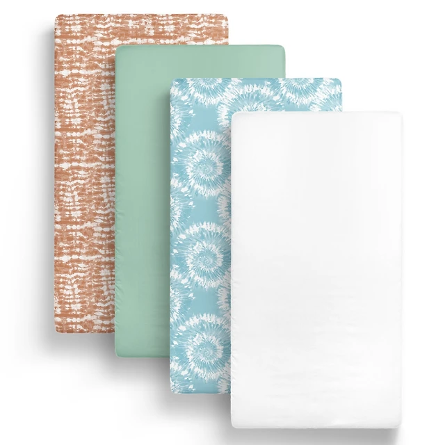 The Peanutshell Fitted Crib Sheet Set, Boho Tie Dye, 4 Pack