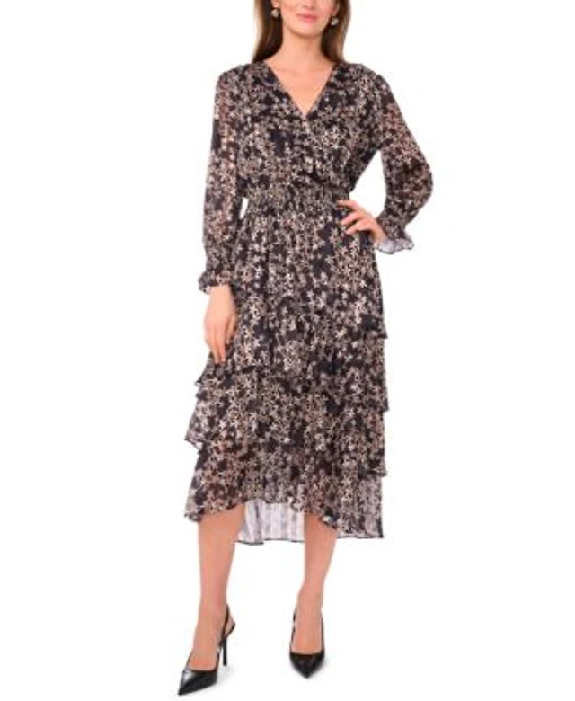 Mac Duggal Women's Ruffle Tiered Floral Cut-Out Chiffon Gown