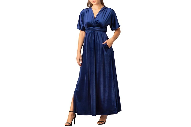 Kiyonna Plus Vivienne Long Sleeve Velvet Evening Gown with Pockets