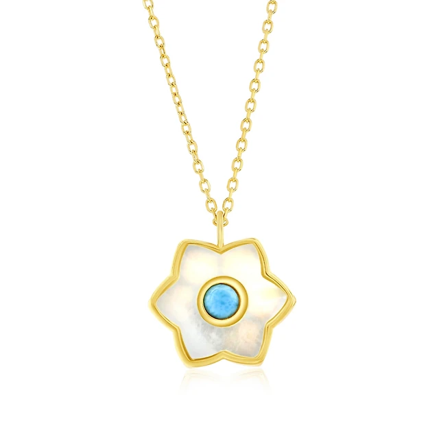 Caribbean Treasures Sterling Silver, Mop & Cz Flower Necklace - Gold Plated