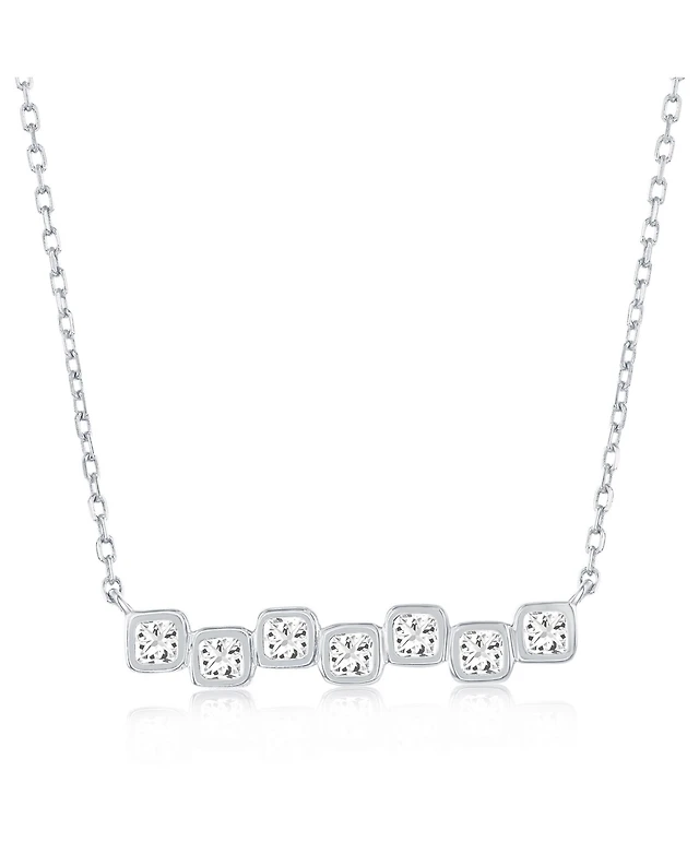 Sterling Silver, Multi-Shaped Bezel-Set Cz Bar Necklace