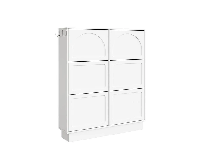gaomon Fluted Shoe Storage Cabinet for Entryway with 2 Flip Drawers and Adjustable Shelves 48 inch Tall Freestanding Narrow Wood Shoe Cabinet