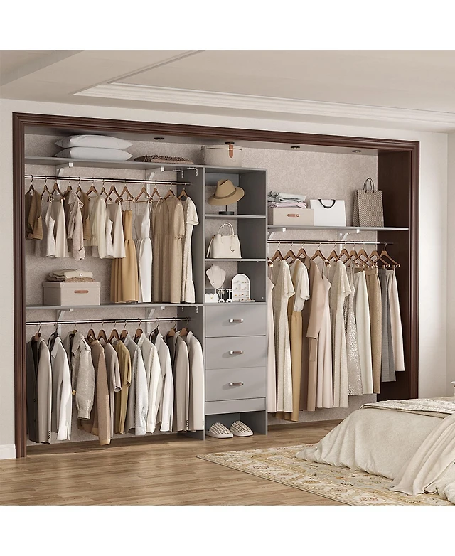 15-Shelf Standard Bookshelf with Adjustable Shelves, 4 Drawers