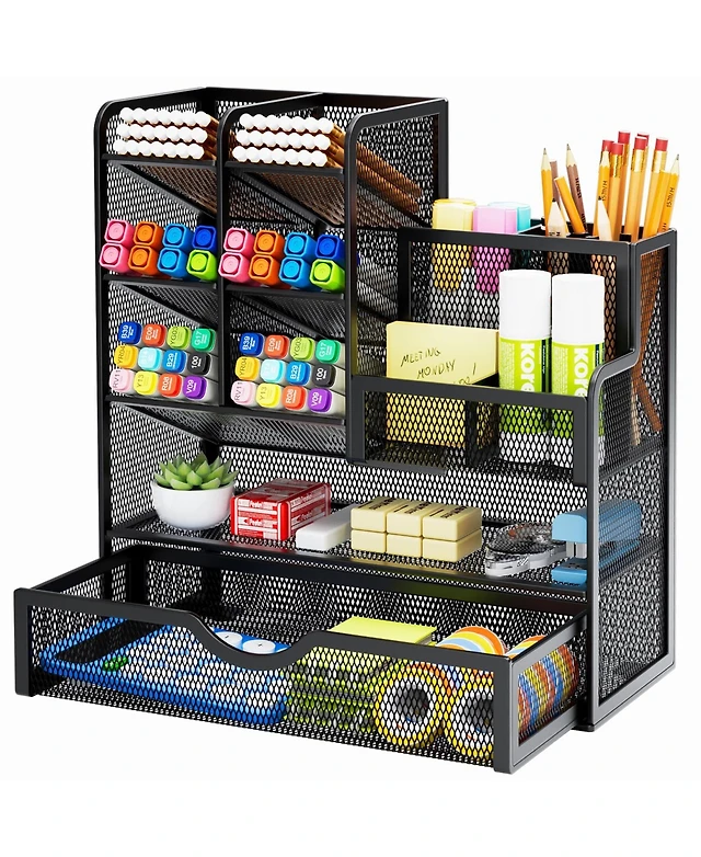 15-Shelf Standard Bookshelf with Adjustable Shelves, 4 Drawers