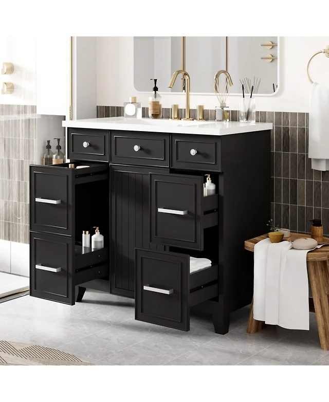 Streamdale Black Wall-Mounted Bathroom Cabinet with Mirror and Shelves