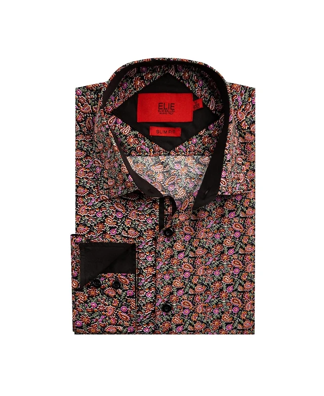 Elie Balleh Big Boys Black Slim Fit Paisley Print Shirt