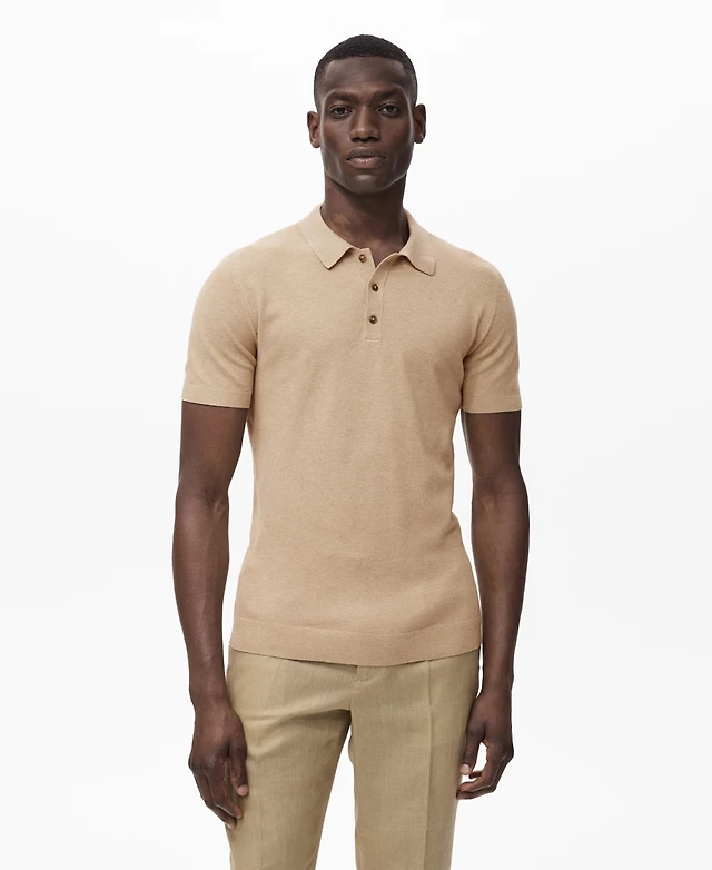 Mango Men's Linen Blend Slim Fit Polo Shirt