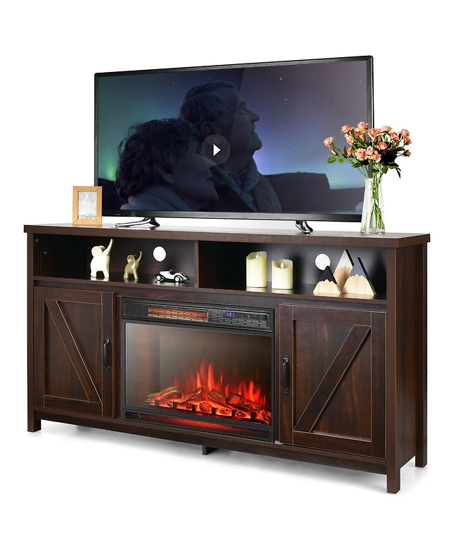Gymax 48'' Tv Stand Console Cabinet w/ Fireplace Entertainment Center For Living Room Natural