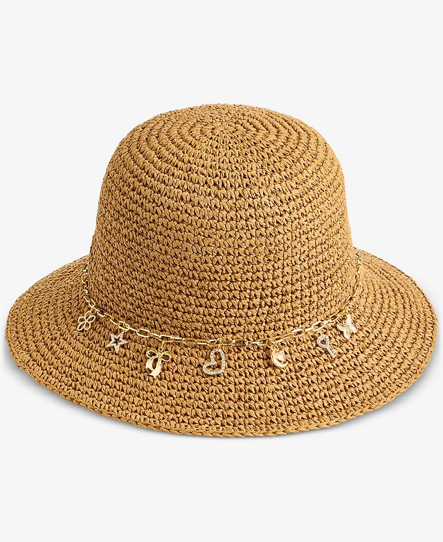 On 34th Charm Trim Paper Crochet Bucket Hat, Macy's Exclusive